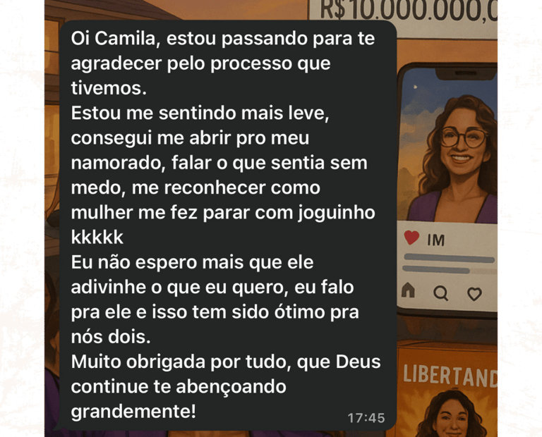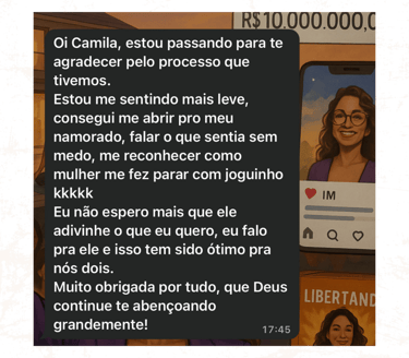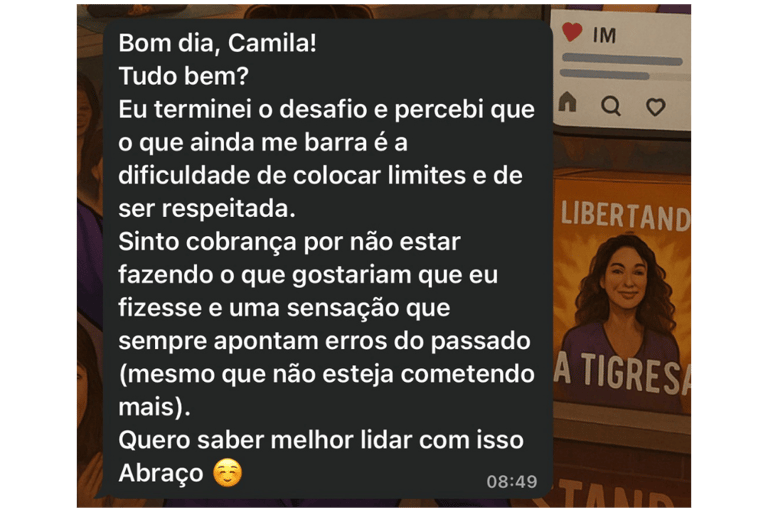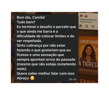 Uma jornada pra você sair da autossabotagem, voltar a confiar em si e se tornar a mulher que se posiciona, se valoriza e não aceita menos do que merece.