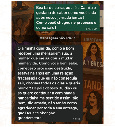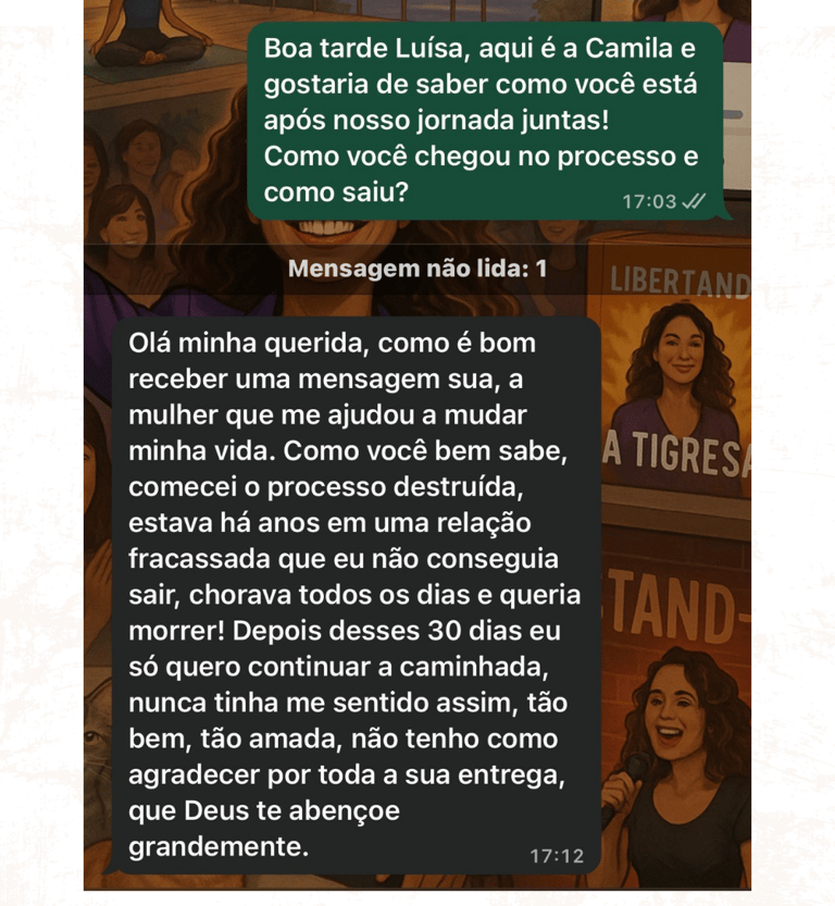 Esse desafio foi criado pra te ajudar a despertar a MULHER GIGANTE que já existe dentro de você...essa jornada não é sobre o outro, é SOBRE VOCÊ, é sobre AUTOAMOR.